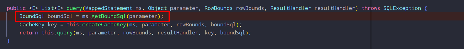 query 메소드안에서 MappedStatement객체의 getBoundSql 메소드를 실행합니다.