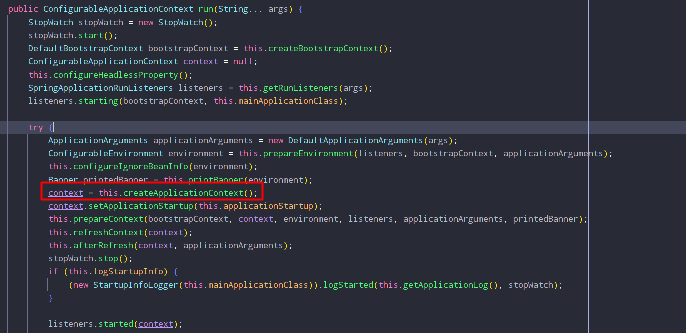 우리가 보고자 하는 부분은 refreshContext 메소드안에 있다.