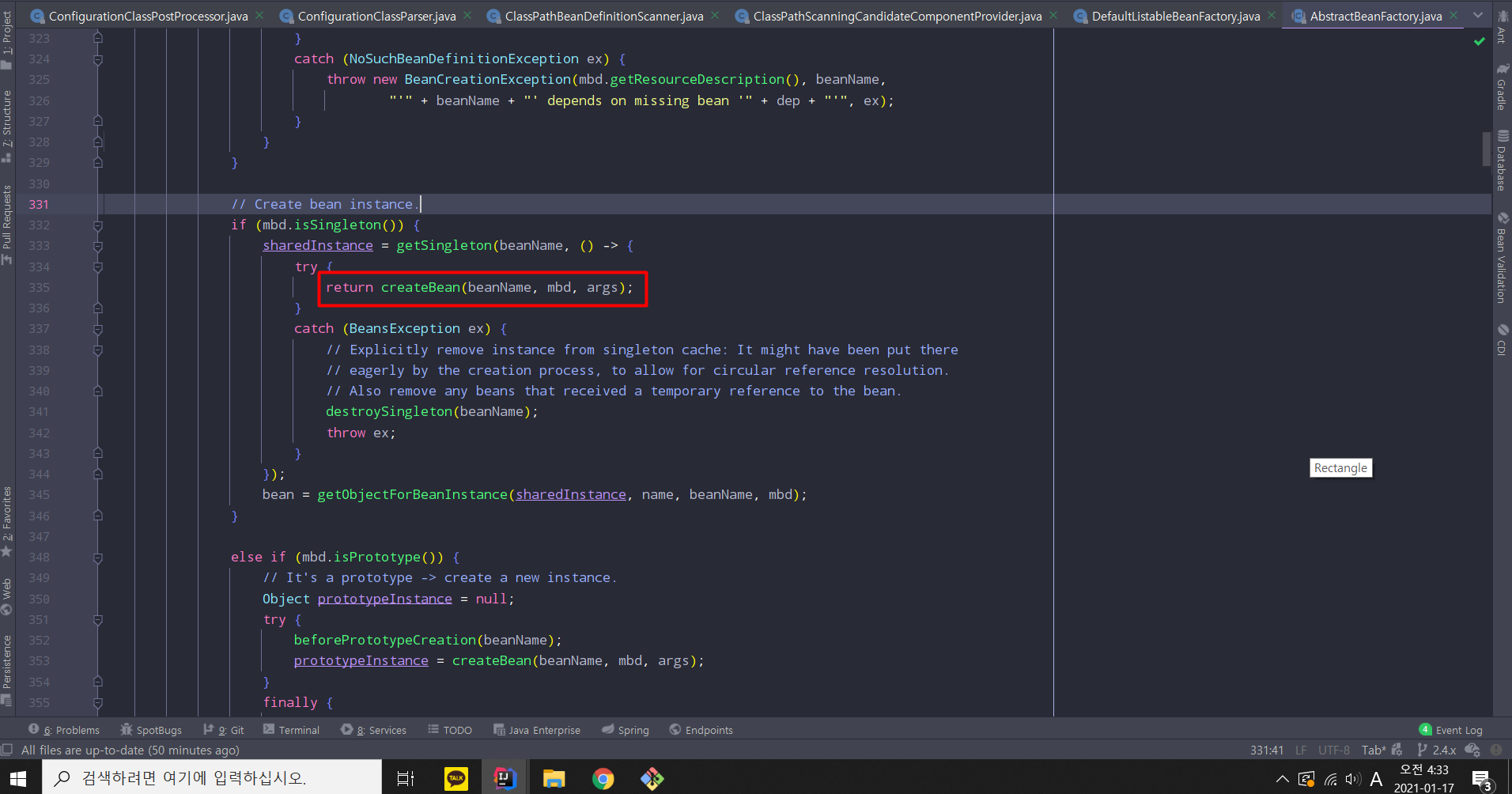 우리가 알아보려는 Bean 등록의 핵심은 사실 여기부터 시작이다.