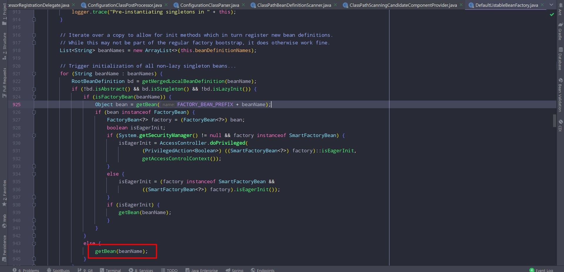 22. DefaultListableBeanFactory.finishBeanFactoryInitializion