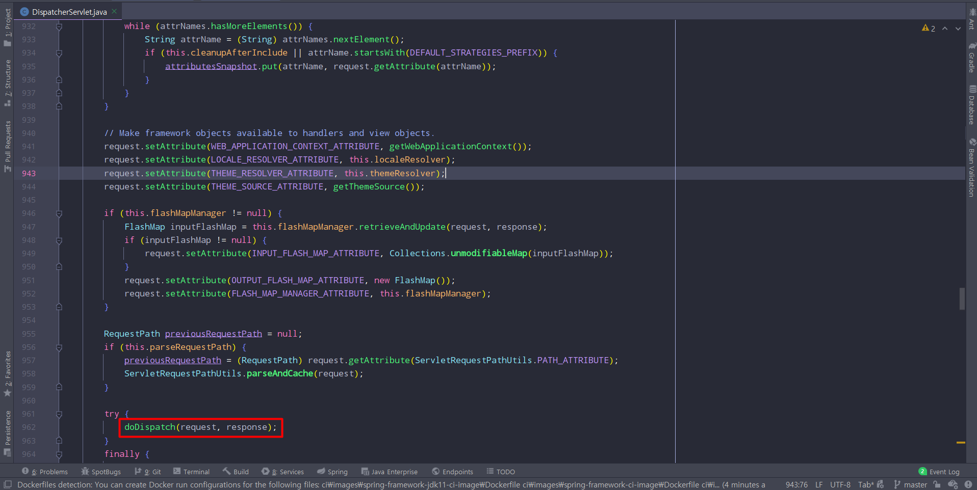 doService 메소드 안에서는 doDispatch 메소드가 실행된다.