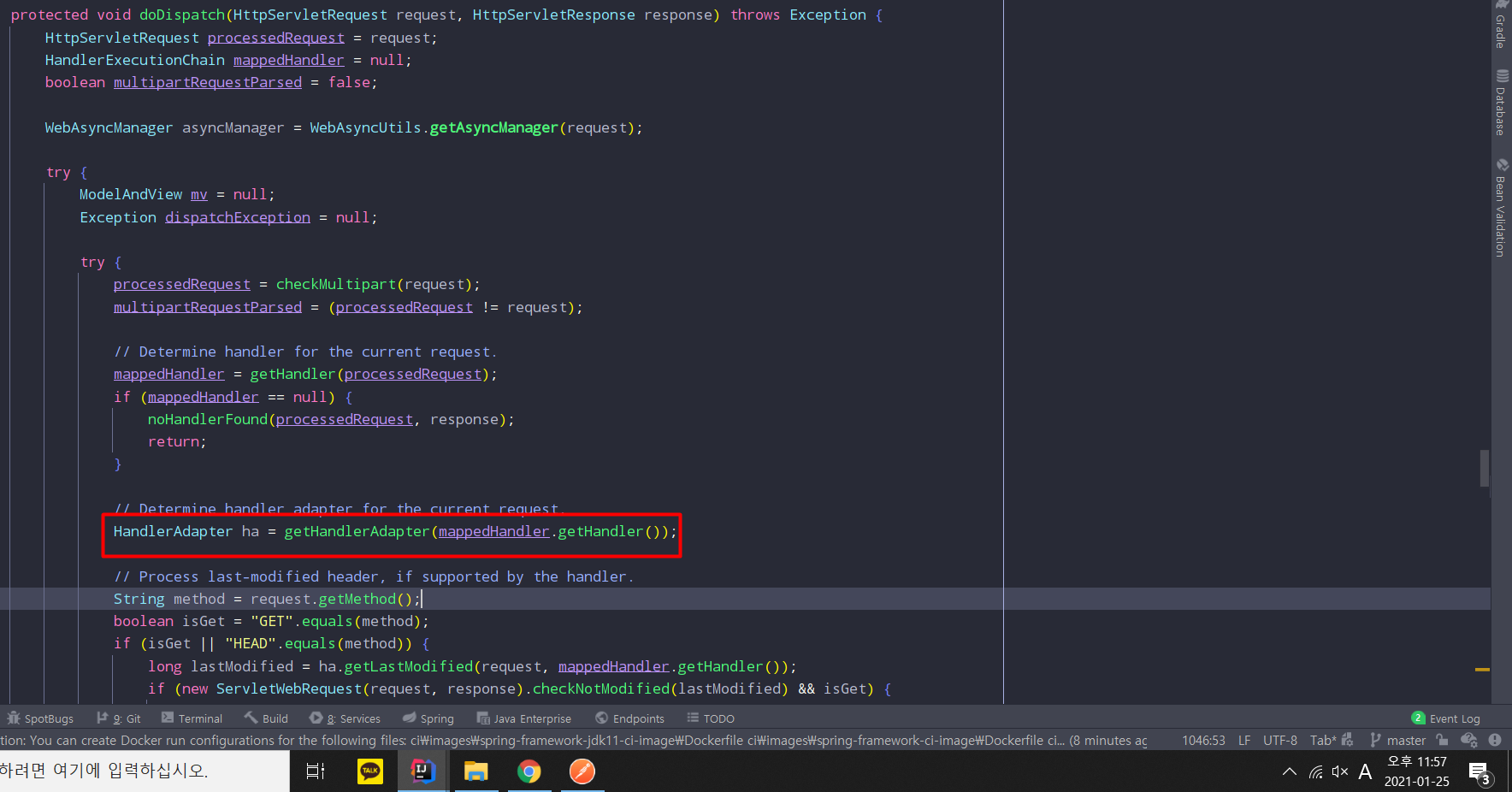 doDispatch메소드안에서 알맞는 Handler를 찾기위해 getHandler 메소드를 호출한다.